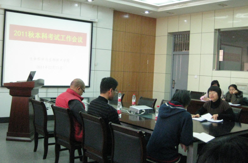 应本科生院要求,生命科学与生物技术学院本学期期末考试工作会议在2011年12月21日9:00顺利召开。会议由生命科学与生物技术学院副院长杨焕杰教授主持,各位监考老师参加了本次会议。