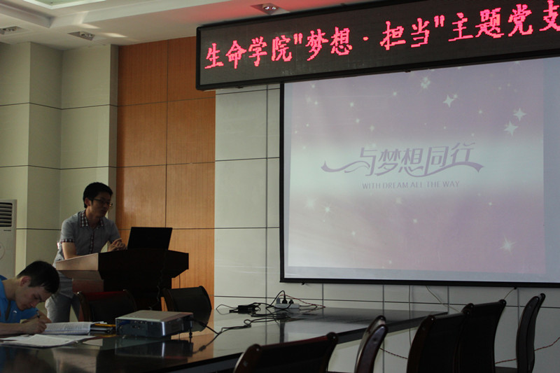 生命学院11级硕士生党支部于5月29日下午,在2E栋405会议室开展了主题为“梦想・担当”的党支部活动,学习习近平总书记5月4日在中国空间技术研究院同各界优秀青年代表座谈会上的重要讲话。