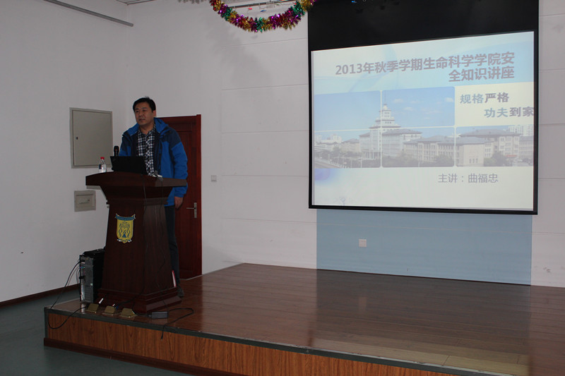 本次讲座邀请到校保卫处科学园保卫科曲福忠科长,曲科长从防火、治安、交通等三个方面为大家讲述安全知识。用生动的案例告诉同学们注意日常生活中的安全隐患问题,让同学们遵守交通安全法规,提高安全意识, 减少不必要的损失。