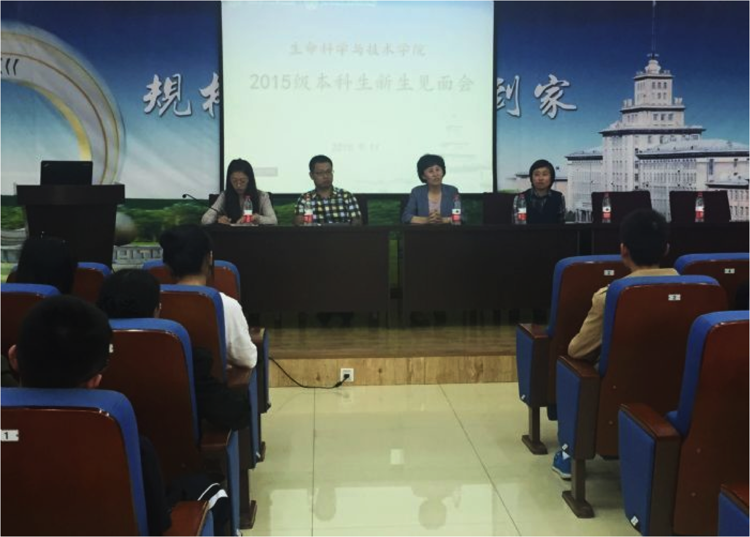 生命学院院长李钰首先代表学院向2015级新生表示热烈欢迎,随后,围绕生命学院学科情况、人才培养、办学特色与资源、国际交流、专业前景等方面,李钰教授深入浅出地为同学们做了详细的介绍,她强调在大学期间,同学们要学会自我管理,不断完善自我人格,学院为学生发展提供了广阔的平台,鼓励同学们要努力学习,打好基础,希望同学们度过丰富多彩、健康快乐的大学生活。