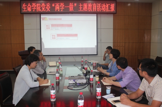 9月9日上午,校党委副书记、副校长张洪涛,组织部部长孙雪等一行三人到生命学院检查督导“两学一做”学习教育工作。生命学院院长、党委书记李钰,副院长吴琼、聂桓,党委副书记喻庆勇,以及教工和学生党支部书记代表参加会议。