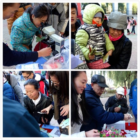 虽然天气寒冷,但大家热情丝毫不减。在活动现场,快速学习答题活动进行的如火如荼,答题桌前挤满了前来参与挑战的同学,挑战者在选取资料卡后认真学习上面的生命科学知识,紧接着工作人员就资料卡上的内容进行提问,答题现场氛围轻松而愉快。“生存法则”挑战更是考验参与者平时对生命科学知识的积累,通过所给动物的形态特征选取他们的生存环境。除此之外,活动现场的显微镜操作更是吸引了许多同学,大家排起长队等待观察神秘的微观世界,参与活动的小朋友在观察了各种玻片标本后也大大增加了对生命科学的兴趣。植物标本展览中,通过将学院学生自己制作的植物标本展览出来,使同学们不用到野外即可认识到多种植物。