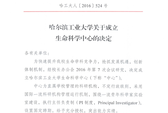 学校正式发文成立直属科研机构生命科学中心