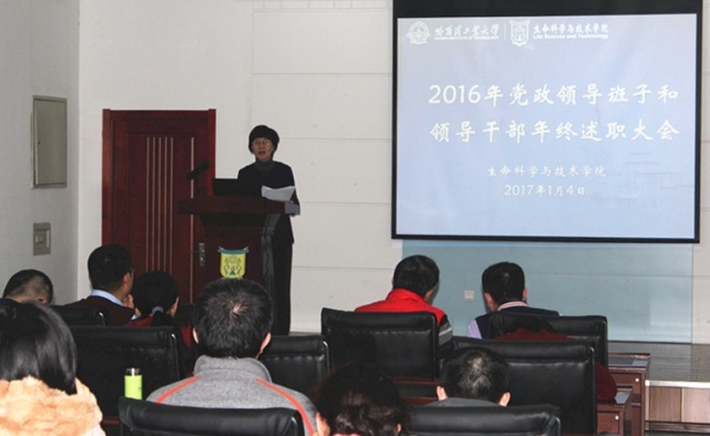 按照学校《关于开展2016年度领导班子和领导人员考核工作的通知》要求,总结学院党政领导班子2016年学习和工作情况,生命学院于2017年1月4日在科学园2E栋411会议室举行2016年年终述职述廉大会。党委书记李钰主持大会,学院全体教工参加。