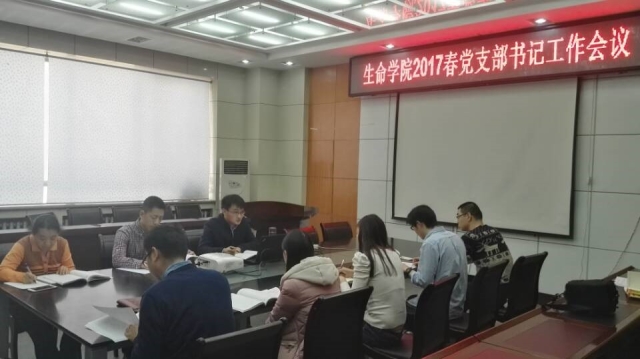 3月15日下午在科学园2E栋405会议室,生命科学与技术学院召开党支部书记工作会议,对春季学期党建工作进行布置和动员,学院党委副书记喻庆勇、辅导员沈悦及全体教工、学生党支部书记参会,党委秘书邢世杰老师主持会议。