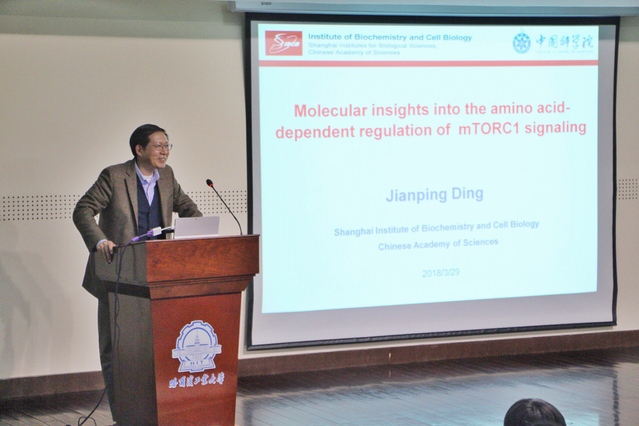 3月29日,应我校生命学院邀请,中国科学院上海生化细胞所研究员、国家杰出青年基金获得者丁建平博士来我校访问,并为生命学院师生做了题为“Molecular Insights into the Amino Acid-dependent Regulation of mTORC1 Signaling”的报告。本次报告由院长黄志伟主持。