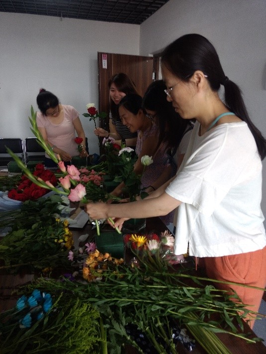 鲜花美好,而美丽的鲜花经过女教工的奇思妙想巧手插趣,更是增添了一份独特的魅力。活动现场配备了花泥、方形花瓶以及各式鲜花等一应器具,女教工们泡花泥、构想、挑选花材,动用自己的巧手完成了一个个美妙的插花作品。温馨的职工小家沐浴在一片欢声笑语中。