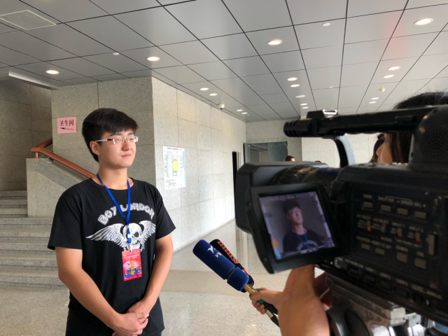 我校‘新时代哈工大青年筑梦实践团’团队负责人高铭遥同学代表全国大学生实践团队接受中共昆明市委副书记刘智同志授旗并在启动仪式茶歇期间高铭遥同学作为全国大学生暑期昆明实践专项团队负责人代表接受云南省电视台,昆明市电视台,云南省日报,云南信息报等7家媒体以及昆明市团市委的采访。