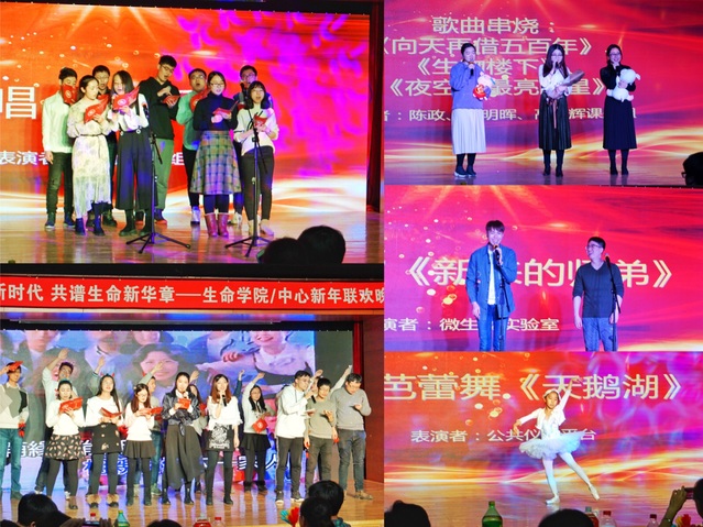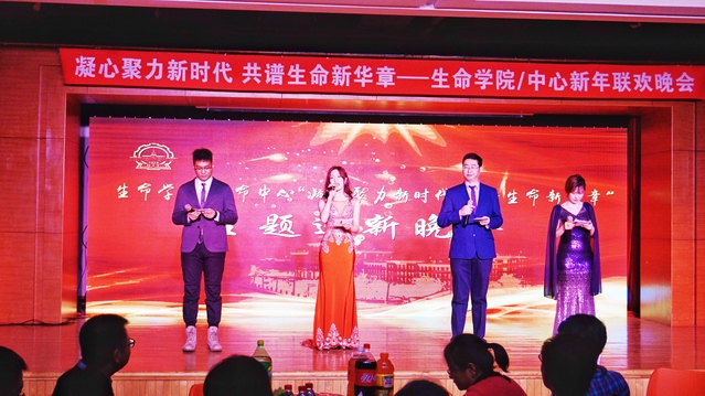 院领导在晚会中致辞,为学院全体师生送上了新年祝福,院长黄志伟对过去一年中学院和中心所取得的成绩和大家的辛勤付出表示衷心的感谢。他强调:正值生命学院成立八周年,生命中心成立三周年之际,希望全院师生能够凝心聚力,开拓创新,建功立业新时代,共同谱写生命的新华章。随后,黄志伟院长的一曲《摘下满天星》更是将现场的气氛推到了高潮。最后,晚会在合唱《相亲相爱一家人》中圆满落幕。