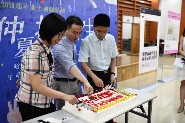 毕业生们在优美的音乐与毕业寄语中,依次走过红毯,在展板上留下签名,并合影留念。随后黄志伟教授代表全院教师致辞,感谢大家对学院工作的支持,又结合自己当年毕业的感受,希望大家毕业之后可以与自己的导师多多联系,分享喜悦,解决困难,最后黄老师祝贺广大毕业生们圆满完成学业,顺利毕业。