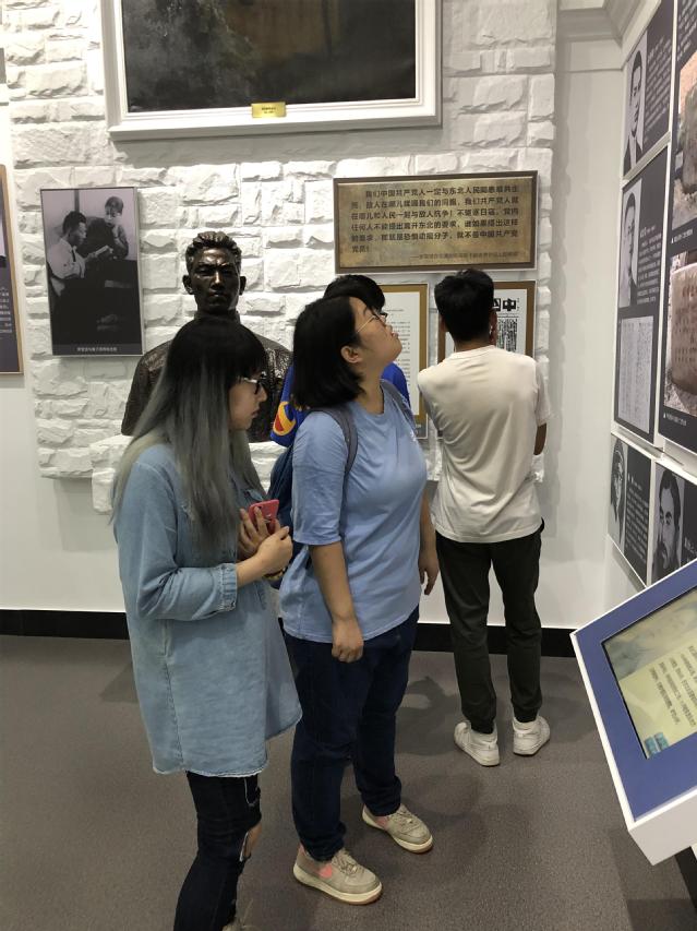 14日上午9:30,参观人员到达了位于南岗区一曼街241号的东北烈士纪念馆。馆外大雨滂沱,行人匆匆;馆内庄严肃穆,观者云集。组织员田庆彬、辅导员张子麒带领十余名入党积极分子,认真听工作人员的讲解。一幅幅老照片和视频,一件件老物件,还原了革命记忆,真实再现了革命先烈浴血奋战、前赴后继的场景,大家仿佛回到了那硝烟弥漫、艰苦卓绝的岁月。