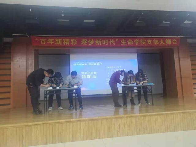 为庆祝哈尔滨工业大学建校百年,提升生命学院团支部凝聚力和创造力,营造丰富多彩的校园文化氛围,展现团员青年的良好精神风貌,12月8日晚6点半,生命学院“百年新精彩,逐梦新时代”支部大舞台在活动中心201成功举办。生命学院党委副书记书记张勇、辅导员张子麒参加活动。