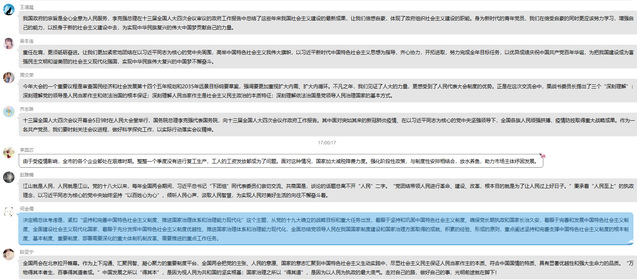 会议结束之后,同学们一致认为,政府工作报告坚持以习近平新时代中国特色社会主义思想为指导,充分体现了以人民为中心的发展思想,通过聆听李克强总理的报告,一幅中国发展新图景徐徐铺展在世界面前,也展现出中国坚定迈向高质量发展、满足人民新期待的自信。同学们纷纷表示:新百年、新征程,作为青年学生,将深入学习两会精神,坚定理想信念,练就过硬本领,投身强国伟业,将个人理想融入祖国发展的历史进程,为中华民族的伟大复兴做出更大的贡献!