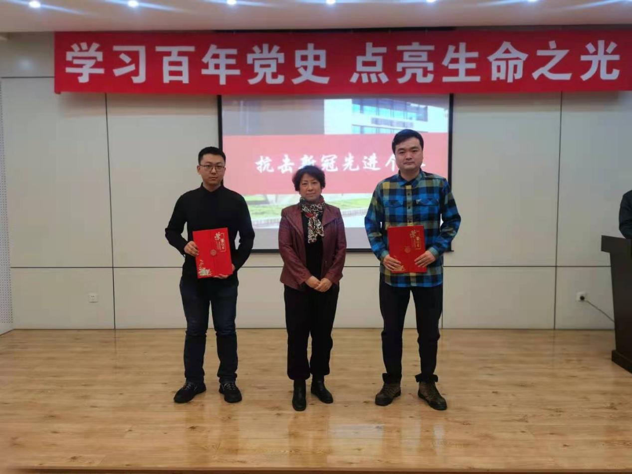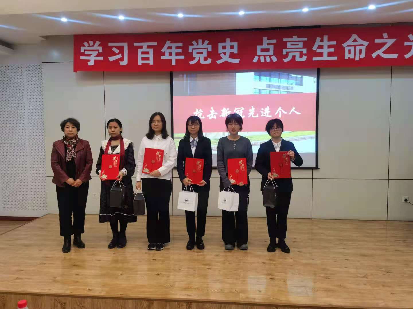 党委书记白玉蓉老师为抗疫先进个人唐然、甄梓期,抗疫优秀志愿者王正然、李尔卓、常曦文、王佳昊、方珠璐妮颁发证书和奖品。