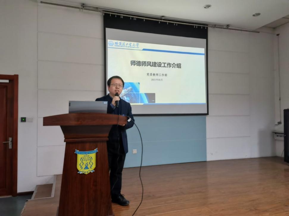 赵义军老师为大家深入解读了习近平总书记于2018年9月10日在全国教育大会以及2021年4月19日在清华大学考察时的讲话,总结了国务院印发的《深化新时代教育评价改革总体方案》的指导思想,指出要“坚持把师德师风作为第一标准”,并深入解读了教育部《新时代高校教师职业行为十项准则》、《研究生导师指导行为准则》、《关于高校教师师德失范行为处理的指导意见》以及《哈尔滨工业大学教职工师德“一票否决制”实施办法》等重要文件。讲座通过若干典型案例,深入浅出地为大家阐述了师德师风建设的重要性,为全体教职工敲响了警钟。