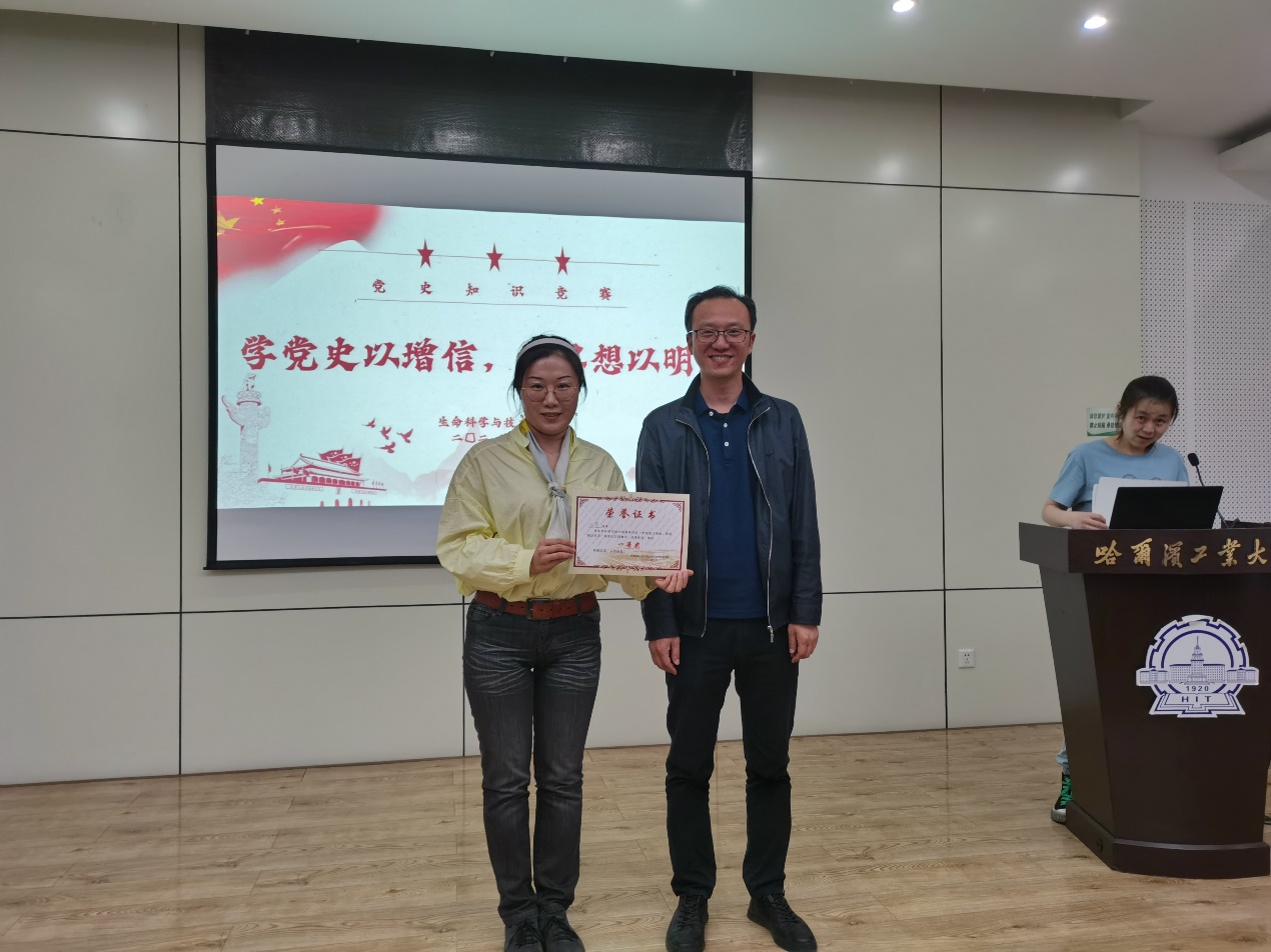本次党史知识竞赛以团支部为单位进行报名,共6个支部30名同学参与竞赛。本次活动分个人笔试和团队抢答两个部分,参赛选手沉着冷静、配合默契,在比赛中充分展现了同学们党史知识的储备和现场应变能力。经过比拼,徐馨获得一等奖,李志鹏获得二等奖,张文馨等3人获得三等奖,19B博士团支部获得团队一等奖。张勇老师、张子麒老师为获奖同学颁奖。