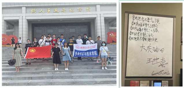 为深入学习贯彻习近平总书记在庆祝中国共产党成立100周年大会上的重要讲话精神,丰富拓展党史学习教育的内涵,引导青年学生学史明理、学史增信、学史崇德、学史力行,更好地传承红色基因、担当时代责任,展示新时代青年共产党人的良好风貌,7月23日至7月24日,生命学院团委组织本科生团支部、研究生团支部的党团员骨干前往大庆市开展“传承红色基因,勇担时代使命”社会实践活动,实践团成员先后参观大庆市大庆市博物馆,大庆市石油科技馆、铁人王进喜纪念馆,深入了解大庆这个城市,深刻体会铁人精神,培养爱国奋斗精神。