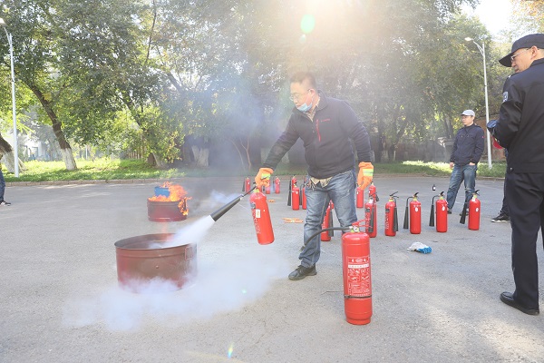 上午9时,张勇副书记主持灭火器的操作演练环节,并由保卫处王继刚老师为现场师生详细讲解了实验室常用两种型号灭火器的灭火原理与使用方法,同时现场向大家示范灭火。培训讲解完毕,由科学园保卫科工作人员引导监督,参训师生踊跃有序地分为三组对各自的模拟火点展开扑火训练。