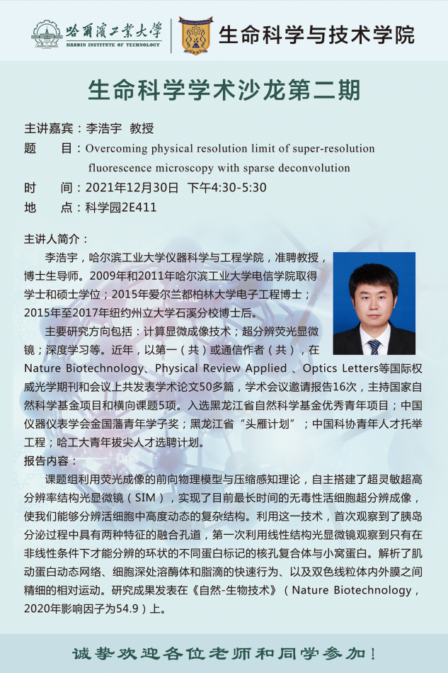 主讲题目:Overcoming physical resolution limit of super-resolution fluorescence microscopy with sparse deconvolution