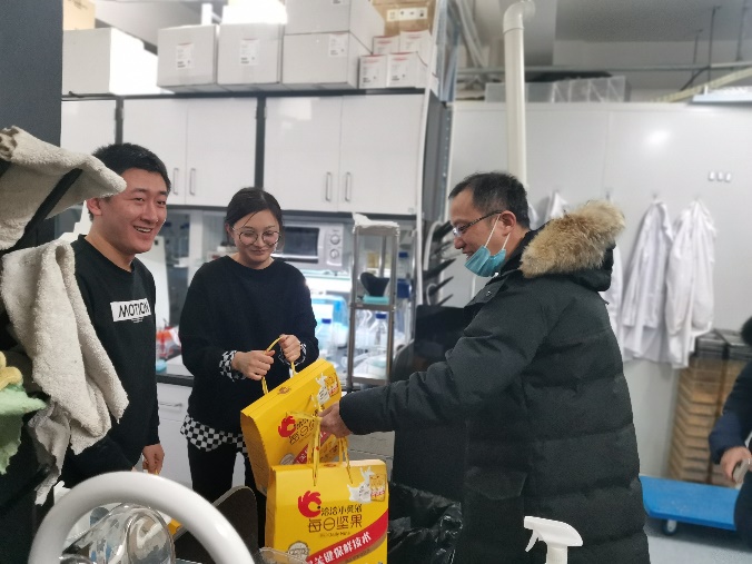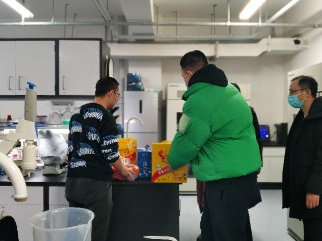 2022年1月30日,生命科学与技术学院为就地过年学生送来了精心准备的“过年大礼包”,党委书记白玉蓉、副院长聂桓、党委副书记张勇和辅导员张子麒向同学们表达了亲切关怀和新年祝福。