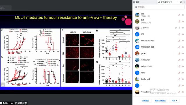 Ji-Liang Li教授首先对Notch信号通路和肿瘤血管生成中的DLL4进行了简单介绍,随后对DLL4在抗VEGF治疗的作用,JAG1与血管生成和抗VEGF治疗的关系,以及靶向DLL4和JAG1蛋白的临床治疗做了详细介绍,另外还介绍了Notch信号通路与肿瘤血管生成和肿瘤治疗抗性相关工作。讨论环节,胡颖老师等多名师生就DLL4-Notch singnalling促瘤效应与免疫细胞之间相互作用等相关问题进行了充分深入交流,Ji-Liang Li教授耐心并热情地解答了师生们的疑惑。会下各位师生表示本次学术活动的举办非常有意义,并对李老师的精彩报告表示感谢。