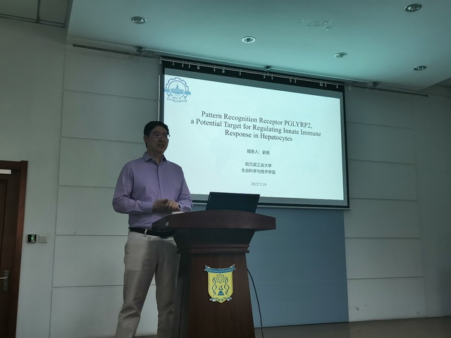 为推动科研发展创新,增强学术交流与师生互动,2022年5月19日下午,我院举办了第四期生命科学学术沙龙活动。本期活动邀请到生命学院史明副教授为我院师生带来题目为《Pattern Recognition Receptor PGL2, a Potential Target for Regulating Innate Immune Response in Hepatocytes》的精彩报告,学术活动由生命学院副院长胡颖教授主持。