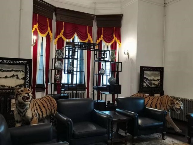 以张氏帅府为载体,学习民国军阀历史。张氏帅府又称“大帅府”,是奉系军阀首领“中华民国陆海军大元帅”张作霖和其长子张学良将军的官邸。在这里,实践团看到了既有中国传统风格的帅府花园,又有欧式风情以及中西合璧式的建筑楼宇。