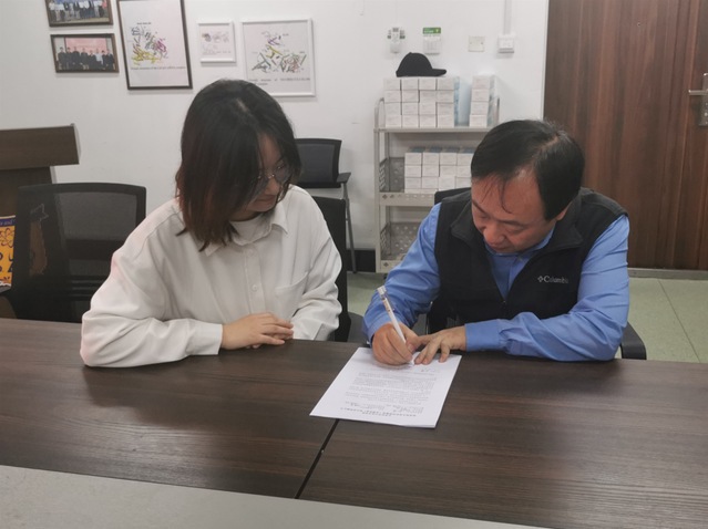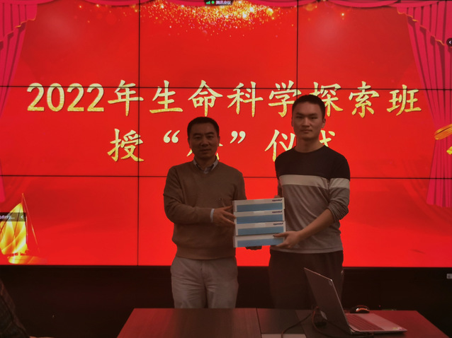 生命科学探索班实行全覆盖导师制,对学生进行个性化指导,经过一学期的实验室创新轮转,确定科研方向。本次已确定导师的学生与老师现场签订培养协议,学生在探索生命科学奥秘的道路上扬帆起航。院长黄志伟教授、副院长胡颖教授、张立辉老师为入选生命科学探索班(本博连读)的高文博等11名探索班学生颁发价值6000元的移液枪或数据处理终端,鼓励同学勇于探索,刻苦钻研。