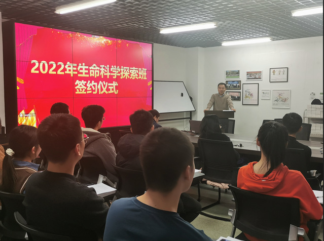 2022年11月16日,生命科学探索班(本博连读)签约及授“枪”仪式顺利举行。院长黄志伟教授、副院长胡颖教授、副院长张立辉老师及探索班部分博士生导师出席本次签约仪式,活动由副院长聂桓教授主持。