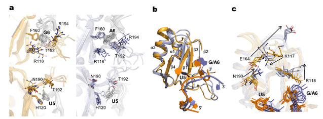 图2:Rbfox-RRM与RNA结合复合物的结构比较