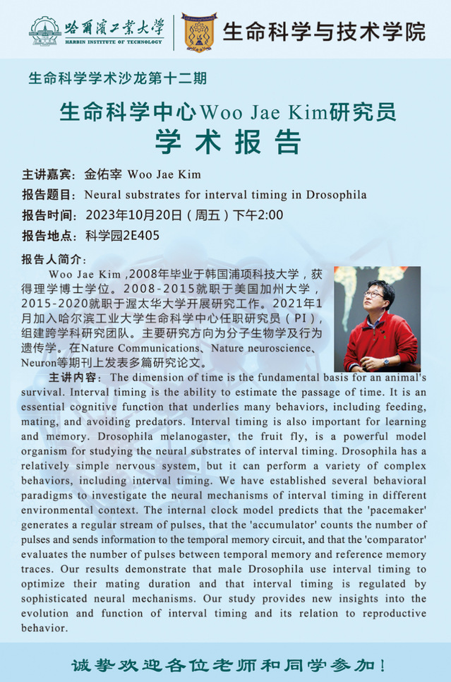 报告题目: Neural substrates for interval timing in Drosophila