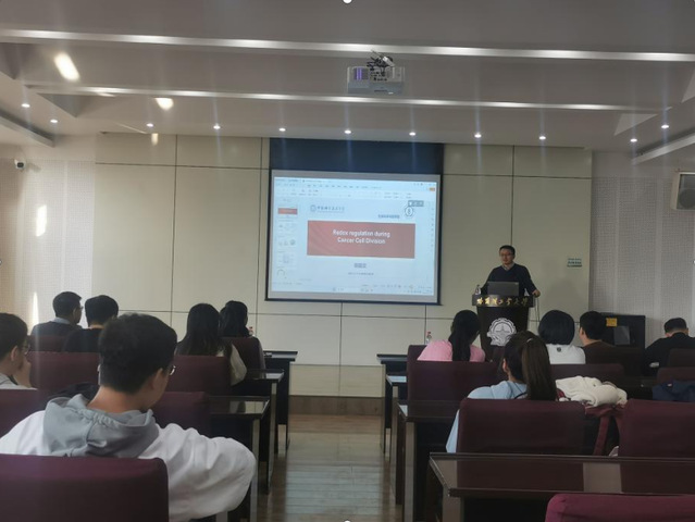 为促进科研创新与学术交流,邀请到中国科学技术大学杨振业教授做了题为“Redox regulation during cancer cell division”的学术讲座,我校教师、本科生及研究生共计30余人参加,会议由生命科学与技术学院副院长胡颖教授主持。