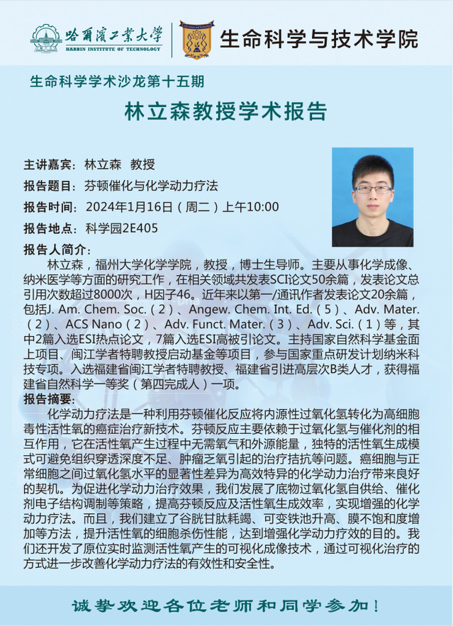 【生命科学学术沙龙第十五期】 林立森教授学术报告