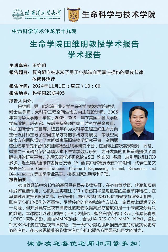 【生命科学学术沙龙第十九期】生命学院田维明教授学术报告通知