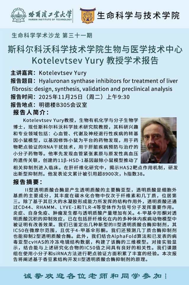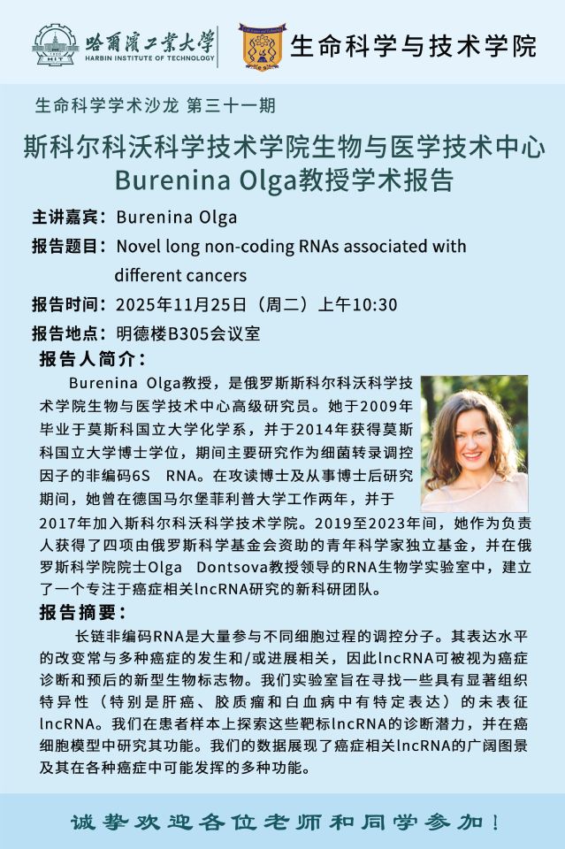 【生命科学学术沙龙第三十一期】斯科尔科沃科学技术学院生物与医学技术中心Kotelevtsev Yury教授、Burenina Olga教授学术报告